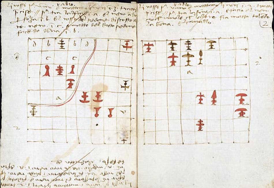 A manuscript was discovered in 2006 among books purchased in bulk from Count Guglielmo Coronini (Gorizia, Italy) that is presumed to be De ludo scachorum (On the Game of Chess) written by Friar Luca Pacioli around the year 1500.
